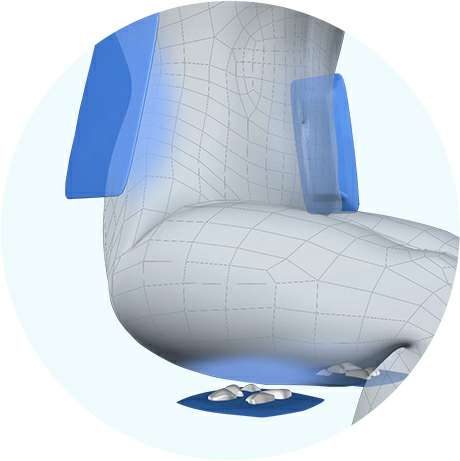 针对肩颈周围易疲劳部位深度按摩。肩部、背部按摩区域均可调整,肩部可移动范围 达18cm,背部可移动范围达24cm。
