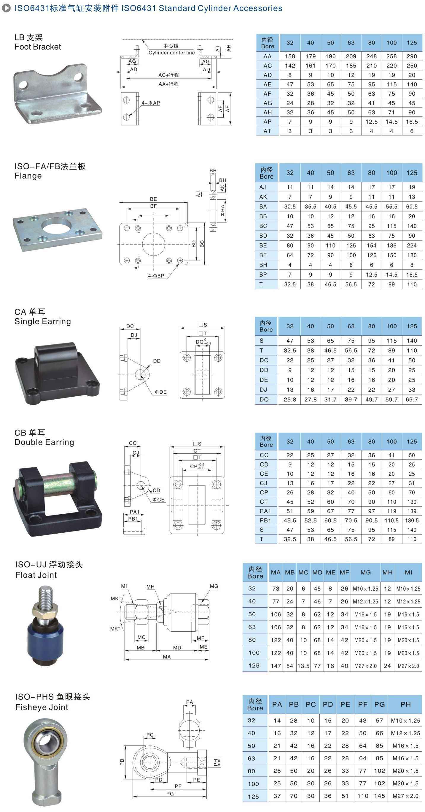 产品展示 > 气缸 > DNC系列ISO6431标准气缸安装附件